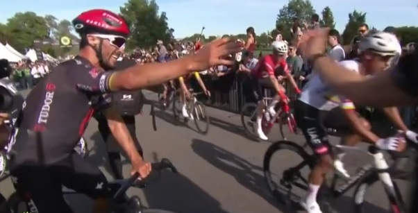 Previamente, en el lote principal que perseguía a los escapados, Pogacar saltó del pelotón al paso por el último giro, logró distanciarse, sin embargo, como cosa curiosa en esta ocasión no logró conseguir su objetivo y, por el contrario, en los metros finales perdió contacto con el grupo para culminar en el puesto 29.