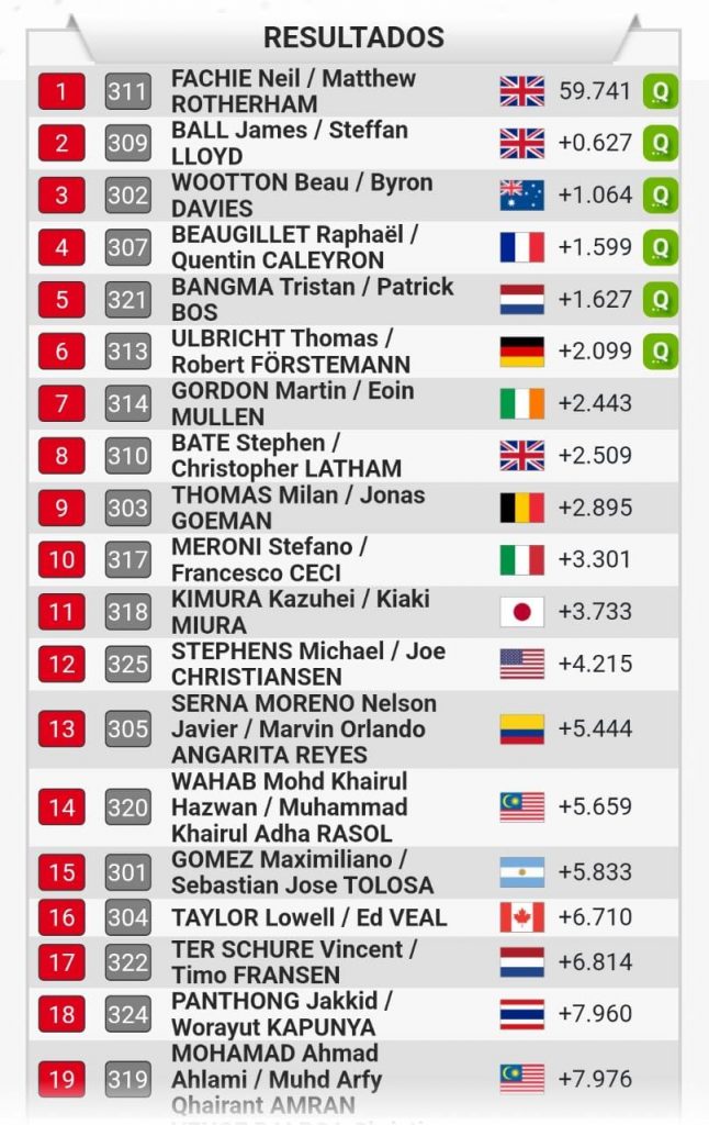 Así mismo, el tándem formado por Javier Serna y Marvin Angarita finalizó en el puesto 13 de la clasificación del kilómetro en la categoría B, en la que los mejores seis tiempos avanzaron a la final.