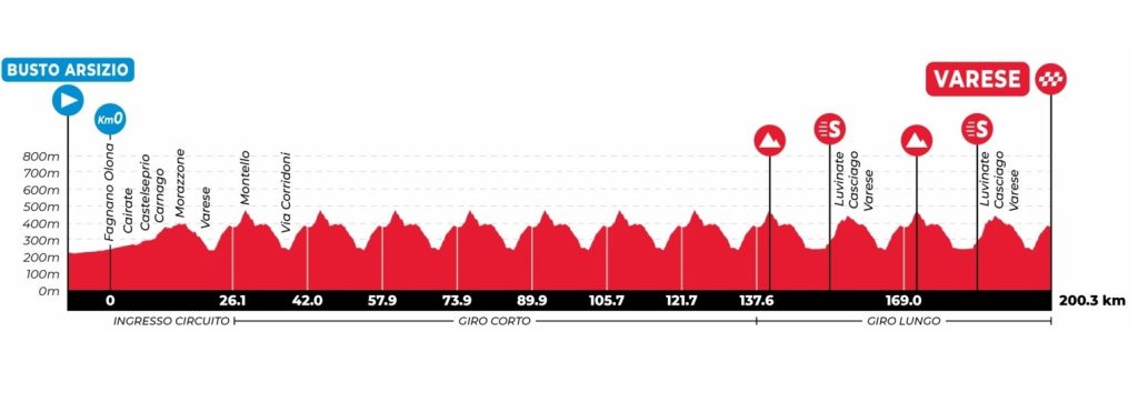 El circuito incluye la subida de los Ronchi, mientras que en las dos últimas vueltas los corredores afrontarán el ‘muro’ de Cinque Piante en Oltrona al Lago di Gavirate, la rampa de via Matteotti en Barasso y, finalmente, el ‘Sasso’, un tramo decisivo en tantas ediciones de la Tre Valli, pasando por Luvinate y Casciago antes de la meta.