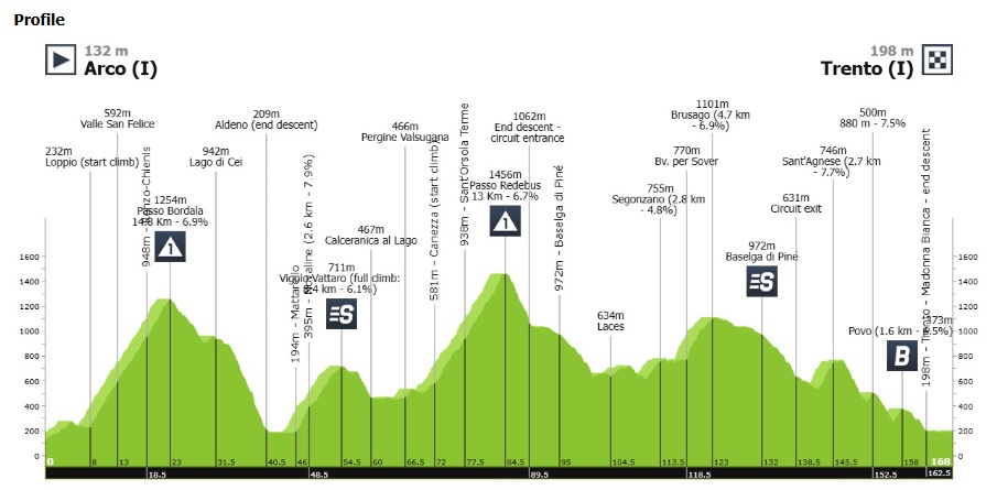 La cuarta etapa, se disputará el jueves 23 de abril, entre Arco y Trento, sobre 167.8 kilómetros, con dos puertos de montaña de primera categoría, en la primera parte de la jornada.