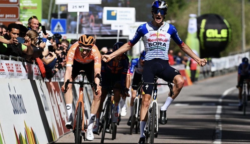 El joven italiano Giulio Pellizzari, (Red Bull Bora Hansgrohe), ganó la segunda etapa y se apoderó del liderato del Tour de los Alpes, con cuarto puesto en la jornada para el colombiano Egan Bernal, (Ineos Grenadiers), y es quinto en la general.