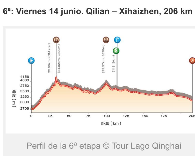 Este viernes 14 julio se disputará la sexta etapa, entre Qilian y Xihaizhen, sobre 206 kilómetros. Los corredores enfrentarán un puerto de montaña de primera categoría a los 30 kilómetros de iniciada la jornada y otro de segunda a los 100 kilómetros. Danny Osorio tiene la posibilidad de pelear los puntos en esos puertos montañosos, sólo tiene dos de desventaja con el líder de esa modalidad, el italiano Alessio Nieri.