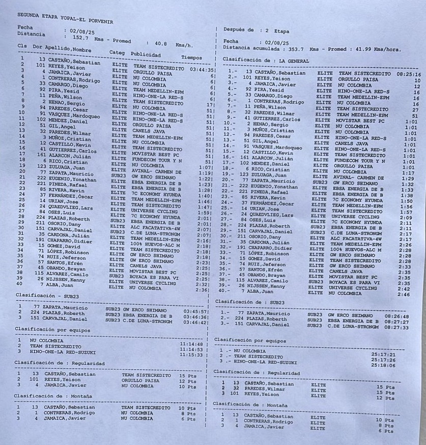 Resultados etapa2 Vuelta a Colombia: