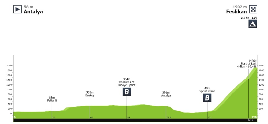 La sexta etapa reina se disputará el viernes 1 de mayo, entre Antalya y Feslikan, sobre 127.9 kilómetros, con un puerto de montaña fuera de categoría, en el sitio de meta.