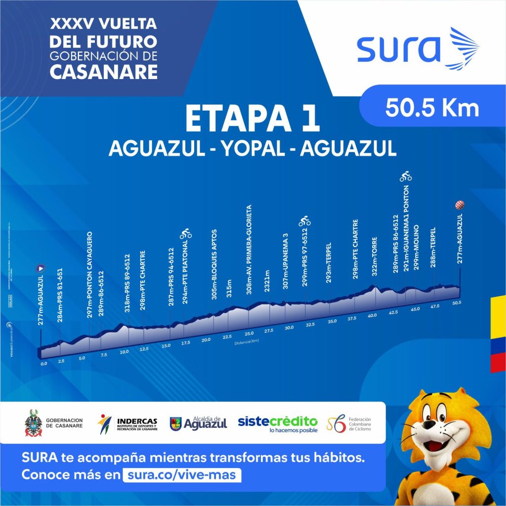 ueves 28 de noviembre, Aguazul – Yopal – Aguazul, 50,5 kilómetros.