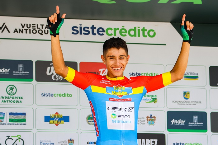 El líder Adrián Camilo Bustamante, (GW Erco Shimano), ganó al embalaje la tercera etapa y se consolidó en la cúspide de la Vuelta a Antioquia 2024.