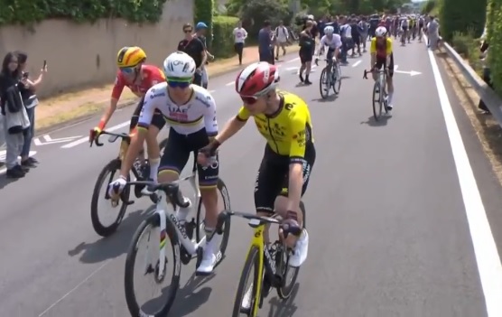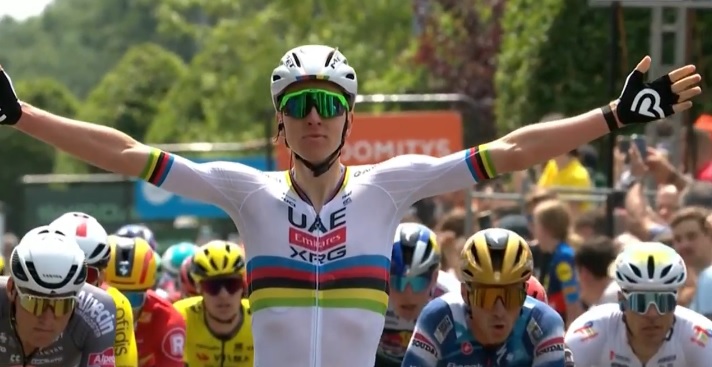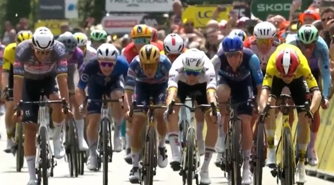 Los 300 metros finales de embalaje fueron emotivos, Remco atacó primero, Mathieu, lo sobrepasó y a menos de 100 metros, Tadej aceleró por el costado izquierdo emparejado con Jonas, pero una rápida destreza en adelantar el “golpe de riñón”, le otorgó el milimétrico triunfo, y la consecución de la primera camiseta de líder de la carrera francesa. Triunfo número 97 para Tadej.