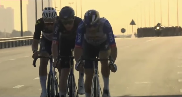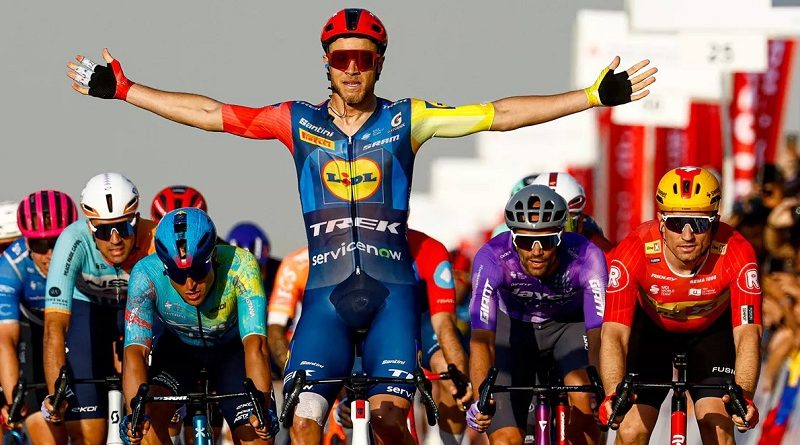 El italiano Jonathan Milan (Lidl-Trek) se aseguró la victoria por segundo día consecutivo en el UAE Tour, en un emocionante sprint, encontró el espacio justo junto a las vallas de protección en el momento exacto y terminó con fuerza. Su compatriota Antonio Tiberi, (Bahrain Victorious), continúa un día más como líder del UAE Tour.