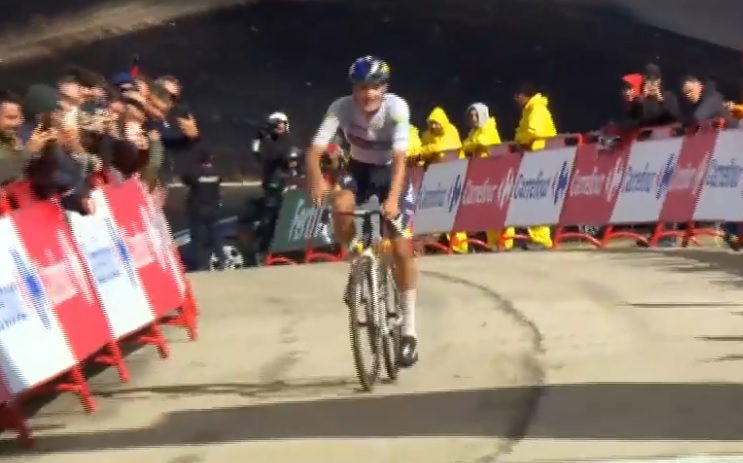 El joven italiano de 21 años, Giulio Pellizzari, (Red Bull Bora Hansgrohe), obtuvo su segunda victoria como profesional -se estrenó en el Giro del Medio Brenta 2023, y la primera en el World Tour, además, vestido de blanco como mejor joven de la Vuelta a España 2025.