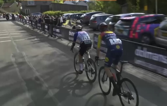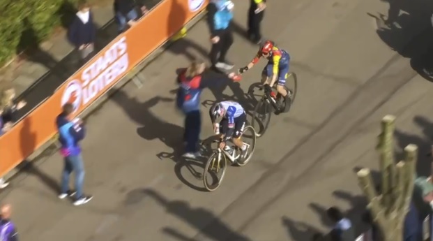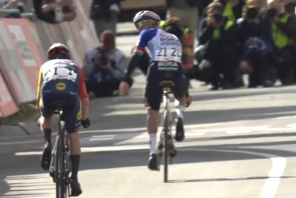 A 20 de meta se retrasa el joven francés y quedan en el primer lugar de la jornada Remco y Mattías, que mantendrían la diferencia hasta llegar a disputar el sprint por el título.