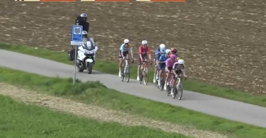A 27 kilómetros de meta, después de la cacería a los fugitivos, solo quedan en punta el danés Mattias Skjelmose, (Lidl Trek); el belga, Remco Evenepoel, (Soudal Quick Step); y el francés, Romain Gregoire, (Groupama – FDJ United) con ventaja de 25 segundos sobre un grupo perseguidor de 8 corredores.