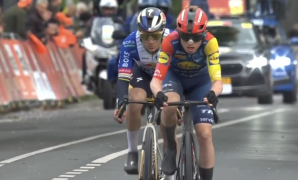 Como revancha simbólica, Evenepoel volvió a cruzar la meta de la Amstel Gold Race junto a Mattias Skjelmose, (Lidl Trek), esta vez con un mejor resultado para el favorito belga. Con potentes pedaladas, se alzó con su primera victoria en una clásica holandesa.