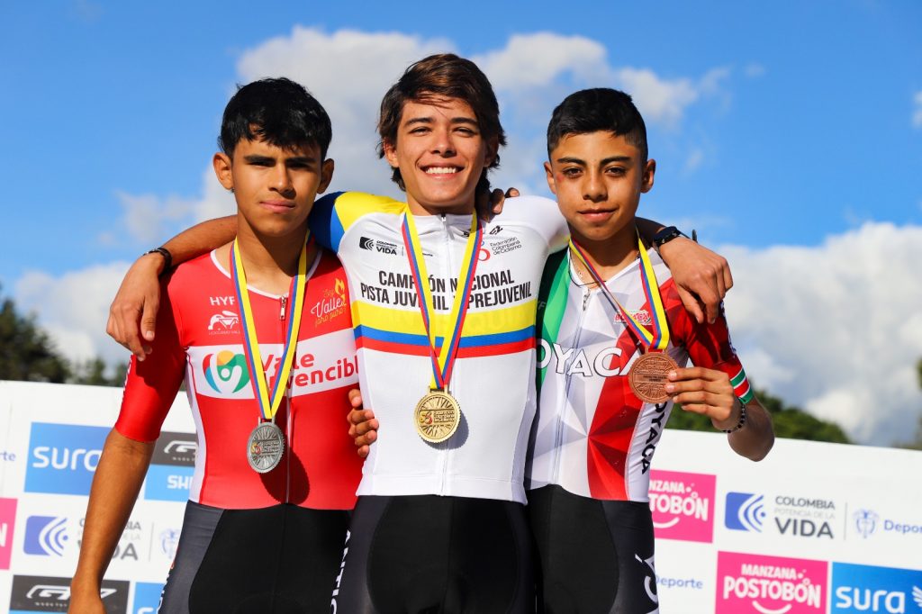 Cristian Moncada de Antioquia se coronó campeón prejuvenil del keirin tras vencer en la final al boyacense Julián Manrique y al bogotano Yullian Daza, medallistas de plata y bronce, respectivamente.