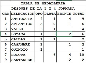 En la jornada se disputaron seis finales, de las cuales dos fueron ganadas por Antioquia, dos por Atlántico, una por Boyacá y una por Casanare.