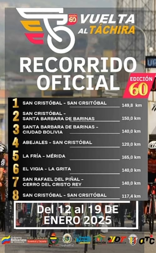 Jefferson, ya corrió en el Táchira 2024, y Camilo Gómez, hace su debut en el tradicional giro patriota. cumple sesenta años, con la actuación de los antioqueños, Luis Emilio Vélez, ganador de la primera etapa y Cochise Rodríguez el gran campeón y, además, ganador tres veces de esta competencia.