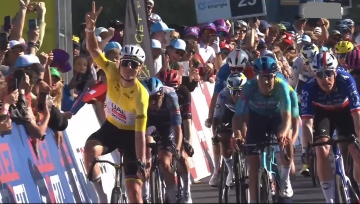 Ya al entrar en la recta final de la jornada disputada entre Rue y Vucherens, sobre 173.1 kilómetros, Dorian Godon, (Ineos Grenadiers), transitaba con la expectativa y perfectamente posicionado, pero el líder Pogacar desató toda su potencia en el esprint final para doblegarlo y quedarse con una segunda victoria en línea en la carrera suiza.