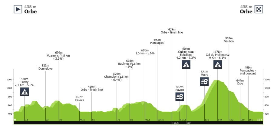 La tercera etapa se disputará el viernes 1 de mayo, con salida y llegada a Orbe, sobre 176.6 kilómetros, con tres puertos de montaña, dos de tercera, y uno de primera ubicado a 22 kilómetros de la línea de meta.