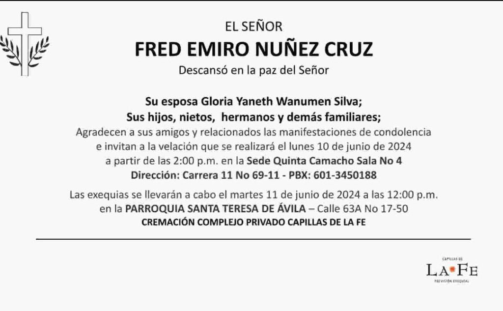 El colega Fred Emiro Nuñez Cruz, un gran profesional, excelente persona y mejor amigo, se adelantó a la presencia del Señor Todopoderoso.