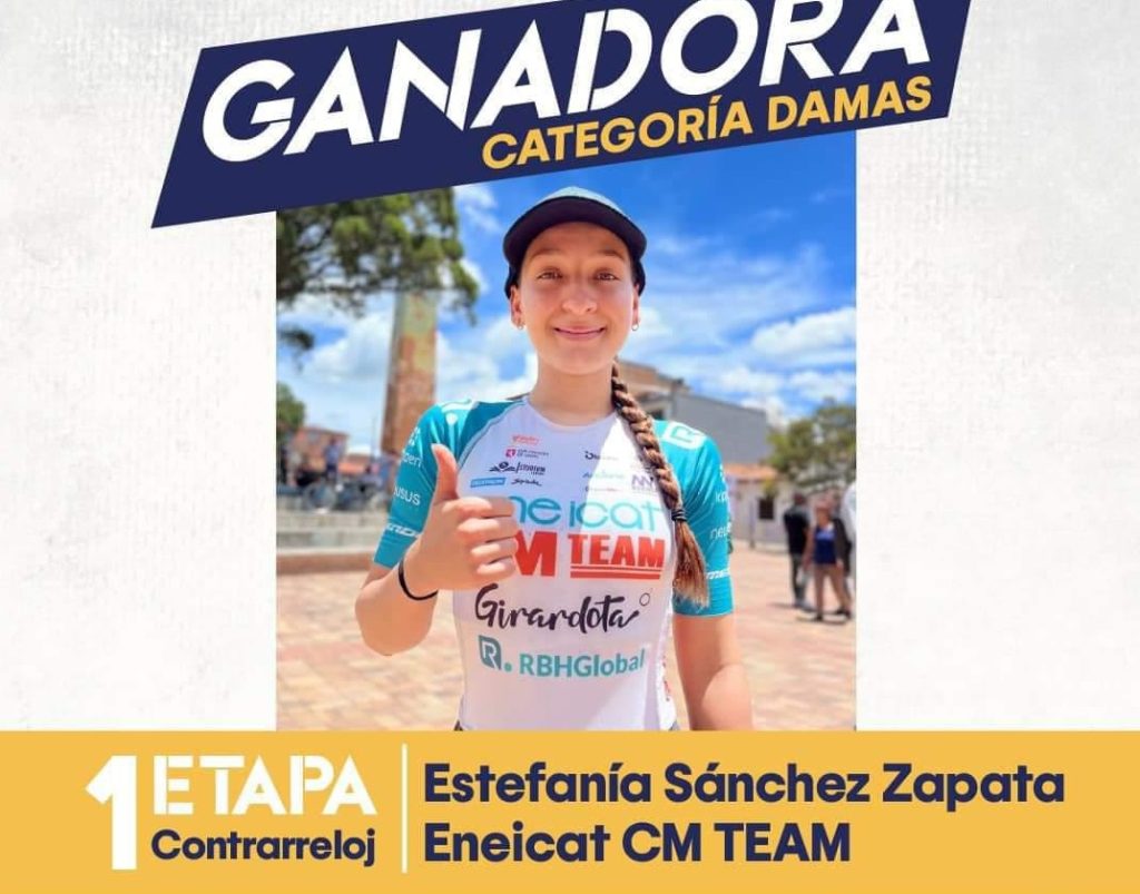 Entre tanto en la rama femenina, el equipo juvenil participa en la categoría abierta dónde la ganadora del día y primera líder es Stefania Sánchez del Einecat, y María Fernanda Torres 3:57 fue la mejor del Ministerio del Deporte.